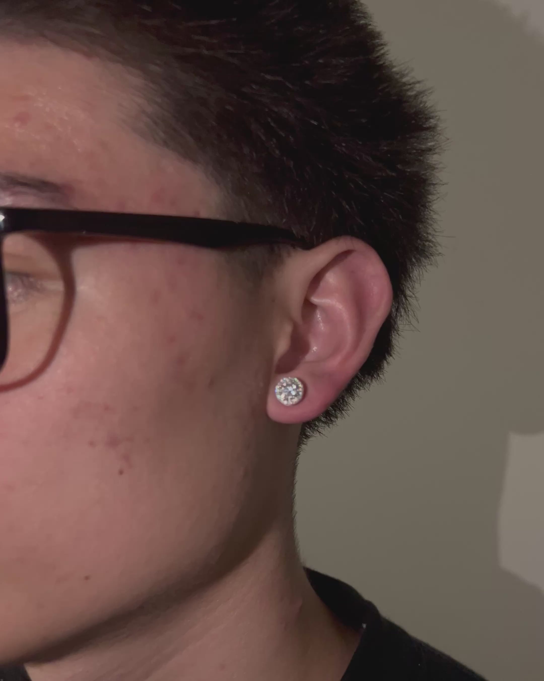 Crafted from premium 925 sterling silver and finished in 14K white gold plating. Each earring set with flawless round-cut moissanite stones that pass the diamond tester. Each pair delivers exceptional sparkle and brilliance — a timeless statement of luxury and confidence.