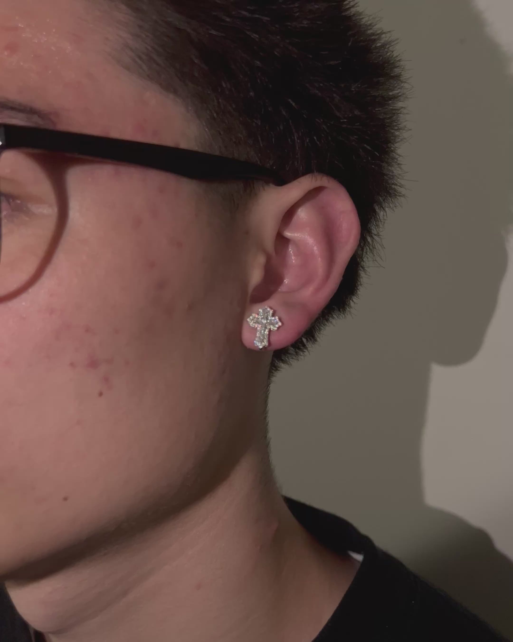 Our Moissanite Cross Earrings are crafted for lasting luxury and exceptional brilliance. Each earring features VVS round-cut moissanite stones that pass the diamond tester, set over premium 925 sterling silver for durability and elegance. Finished in 14K white gold plating to maintain shine. These earrings are designed to retain through daily wear.