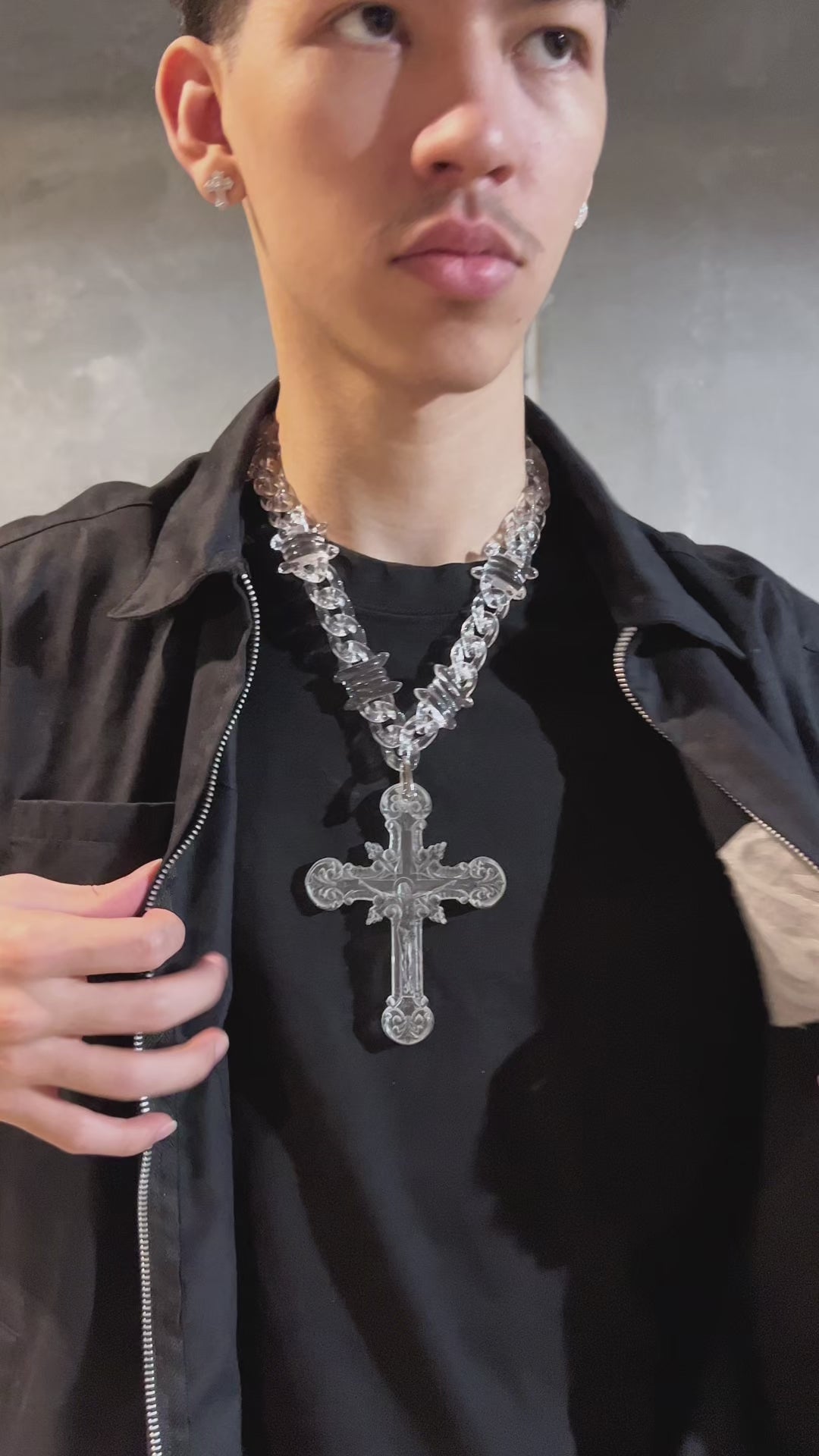 A bold statement piece designed to stand out. Featuring a translucent style acrylic Cuban chain paired with a detailed cross pendant, this piece blends street-inspired design with modern luxury. Lightweight yet striking — made to turn heads wherever you go.